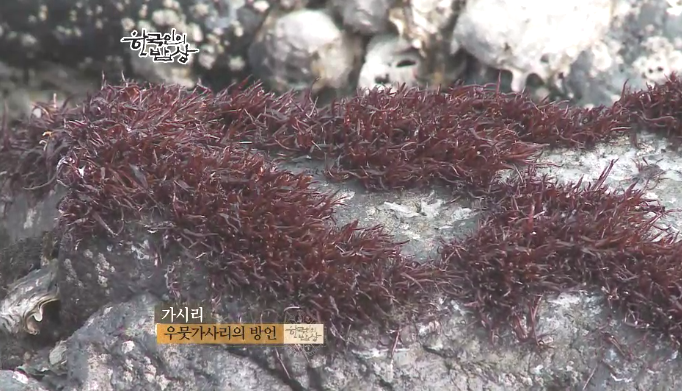 김치를 담을 재료인 ‘더벙이’를 캡니다. 바닷가에서 겨울철에 나는 해초로 술을 드시는 분들에게 술 해독제로 좋다고 합니다. 김치나 지져서 먹는다고 합니다.