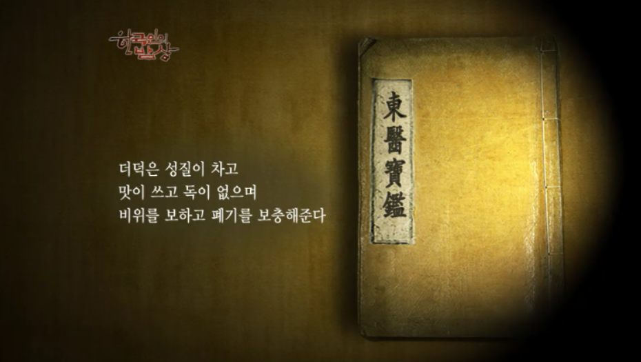 『동의보감(임금의 병과 건강을 돌보는 어의 허준이 1610년에 간행한 의학서적)』에 ‘더덕은 성질이 차고 맛이 쓰고 독이 없으며 비위를 보하고 폐기를 보충해준다.’고 나와있습니다.