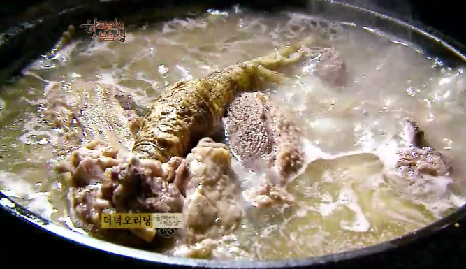 ‘더덕오리백숙’은 압력솥에 오리와 더덕을 씻어 껍질째 넣고 30분 정도 끊인 후에 꺼내서 뚝배기에넣고 끊입니다.