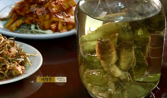 ‘더덕주’는 더덕에 술을 부어 만드는데 더덕과 알코올은 궁합이 잘 맞아 알코올이 더덕에 샤포닌을 더 잘 우러나게 한다고 합니다.