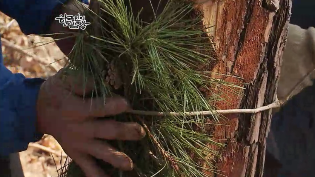 소나무 껍질을 벗겨 내면 얇은 껍질이 있는데 ‘송기(소나무 속껍질)’를 채취합니다. 6월 정도 되면 물기가 올라오면 그냥 먹기도 하고 떡으로 먹기도 했습니다. 벗긴 곳에 흙을 덮고 소나무 잎으로 덮어두면 새살이 돋아 난다고 합니다.