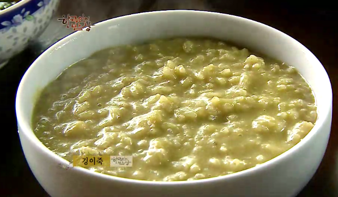 ‘깅이죽’은 잡을 깅이를 잘 씻어서 산채로 절구에 넣고 하나하나 넣으면서 찧습니다. 그리고 물에 넣어서 거르고 또 거릅니다. 냄비에 참기름을 두르고 쌀을 넣고 잘 볶은 뒤 깅이 거른 물을 넣고 빨리 저어주다가 끓을 때는 천천히 저어주어야 합니다. 안 저으면 순두부처럼 깅이죽이 몽글몽글해진다고 합니다. 약한 불에 30분 정도 끊이고 소금 간만 합니다.