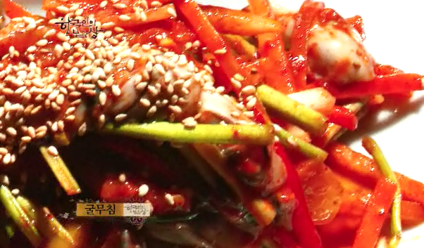 ‘굴무침’ 각종야채와 함께 양념에 무칩니다.