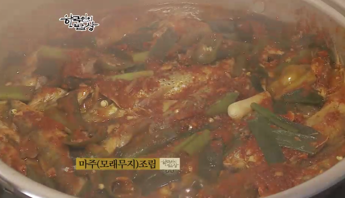 ‘모래무지 조림’은 손질한 모래무지를 냄비에 가지런히 놓고 다진마늘, 고추장, 된장, 인삼액기스 넣고 비벼서 모래무지 위에 발라서 물넣고 파를 넣고 끊입니다. (모래무지를 회로도 먹음.)
