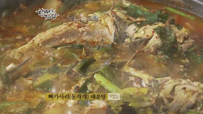 ‘빠가사리 매운탕’은 채에 된장을 풀어서 무를 넣고 끊이다가 손질한 빠가사리를 넣고 익힌 뒤에 깻잎, 고추, 파, 미나리를 넣고 푹 끊입니다.