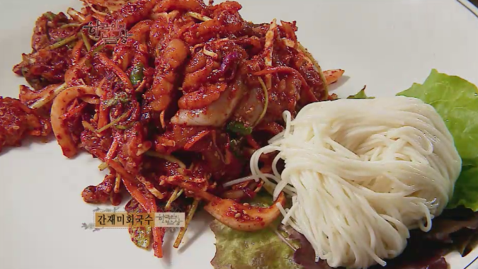 ‘간재미회무침’은 잘 다듬은 간재미를 먹기 좋게 자른 뒤에 막걸리에 씻어 줍니다. 그리고 참기름 고춧가루, 깨, 설탕, 초장을 넣고 양파, 당근, 오이, 참나무을 넣고 비벼줍니다.