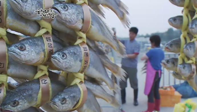 지금은 섶간을 한 뒤에 조기를 한두름씩 묶어 살짝 말려 냉동실로 들어가지만, 원래는 칠산바다에서 불어 오는 해풍에 3개월 이상 말립니다.